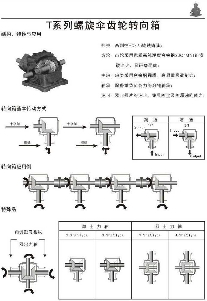 T系列螺旋傘齒輪轉向箱結構.特性和應用,傳動方式,應用例